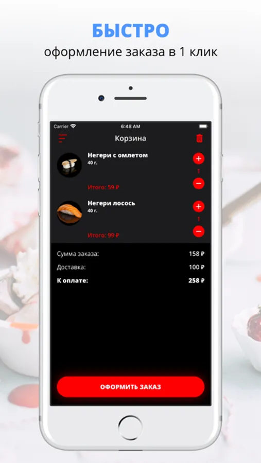 Скачивайте наше приложение, оформляйте заказ и наслаждайтесь любимой едой, где бы Вы ни были! Приятного аппетита!