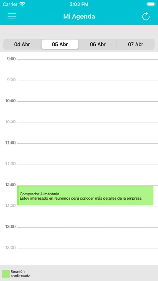 Le permite ver sus citas durante el evento así como confirmar que las citas se han celebrado.