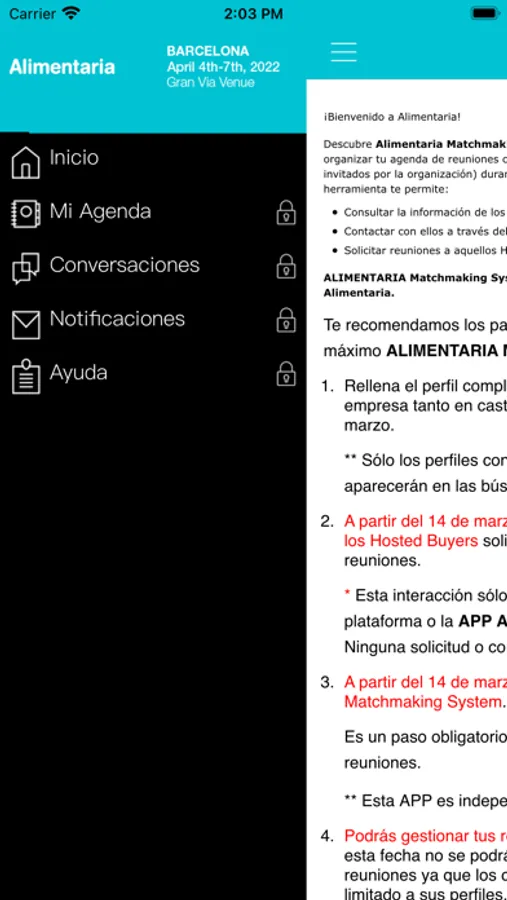 Aplicación destinada a expositores y hosted buyers de Alimentaria Barcelona 2022.