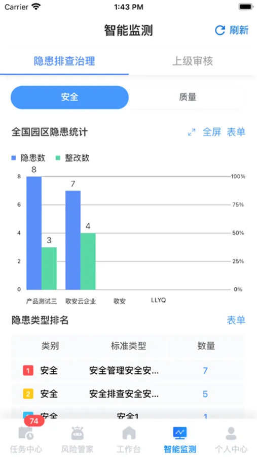 帮助安全从业者快速完成日常安全工作,包括不限于隐患治理,隐患排查,安全检查,上级检查,应急作业票等模块。