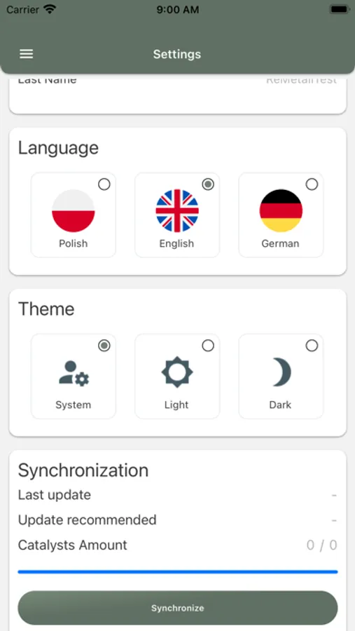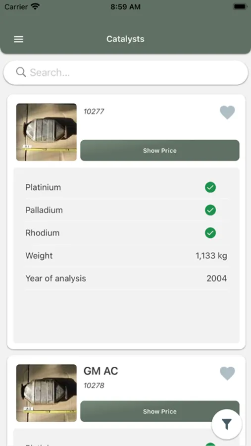 App provides calculating price and displaying list of catalysts based on current price of precious metals.