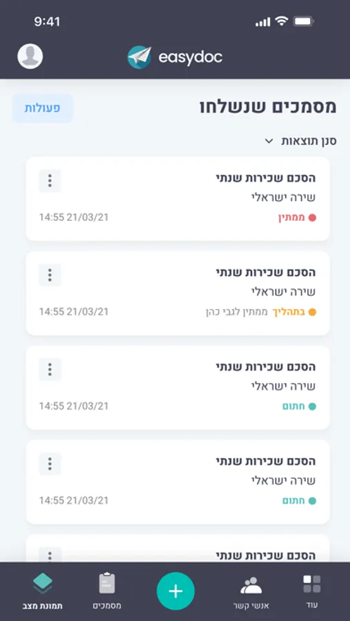 באמצעות איזידוק תוכל לשלוח כל מסמך לחתימה בקלות, ולקבל התרעה מיידית ברגע שהמסמך נחתם.