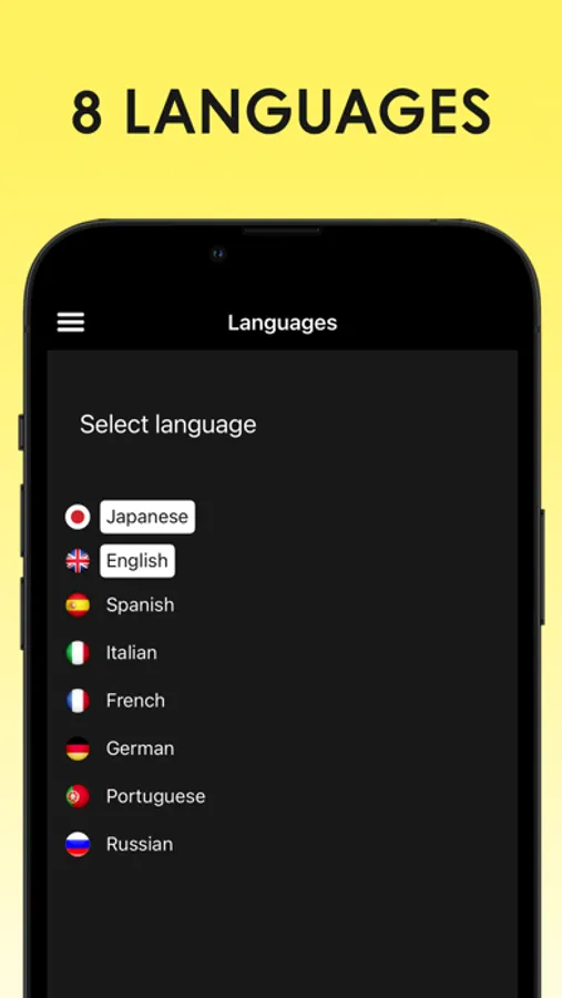 - 8 different languages, choose which languages you want to switch between.