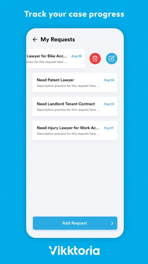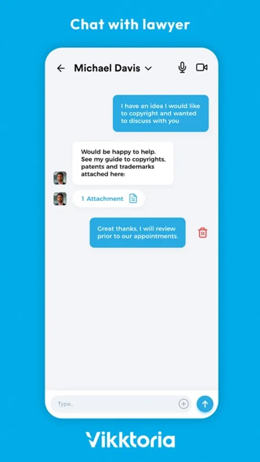 .Already hired a lawyer through Vikktoria? Continue to use the chat and audio/video feature for case updates.