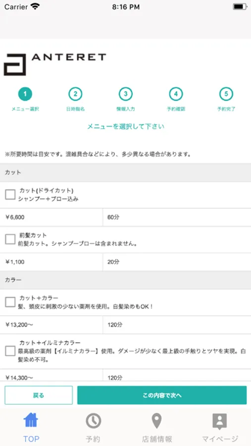 指名予約にも対応しているので担当スタッフのスケジュールを確認してからの予約が可能です。