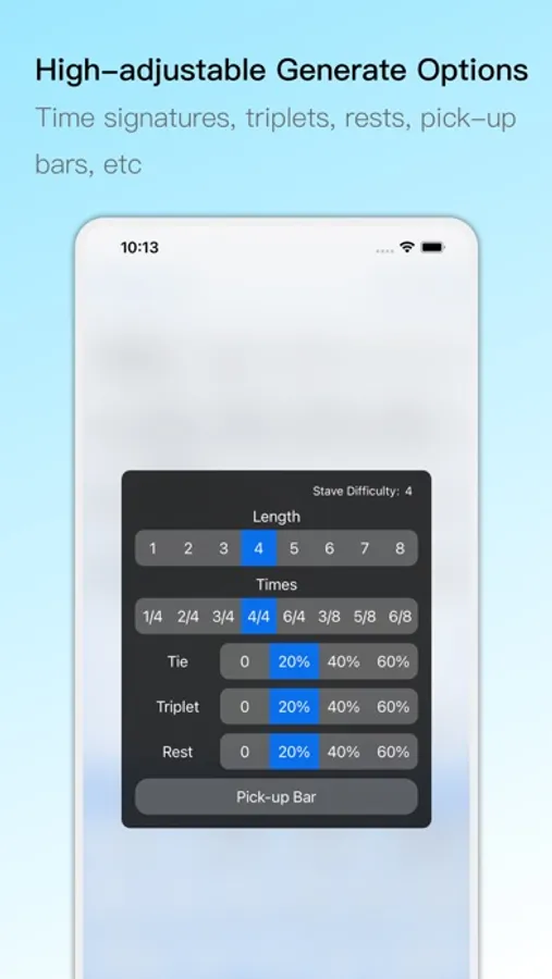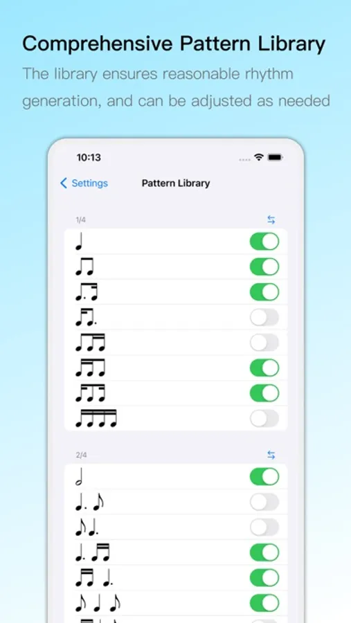 3. Rhythm Patterns Library: Specify the rhythm pattern used in generating. The APP contains all common rhythm patterns.