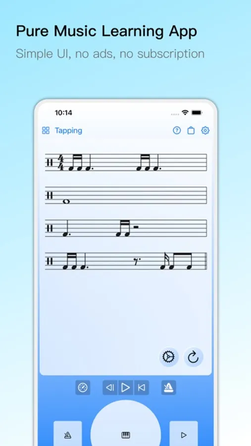 6. Tap mode: Use the touch screen instead of the instrument to perform simple rhythm sight-reading.