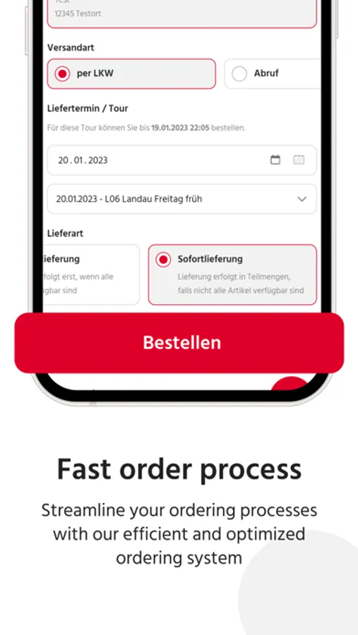 - Place orders for goods directly on the construction site for delivery with the next tour