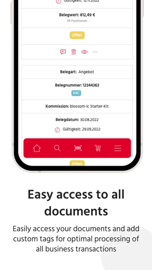 - Access documents (including delivery notes, order confirmations, invoices) for the mobile office