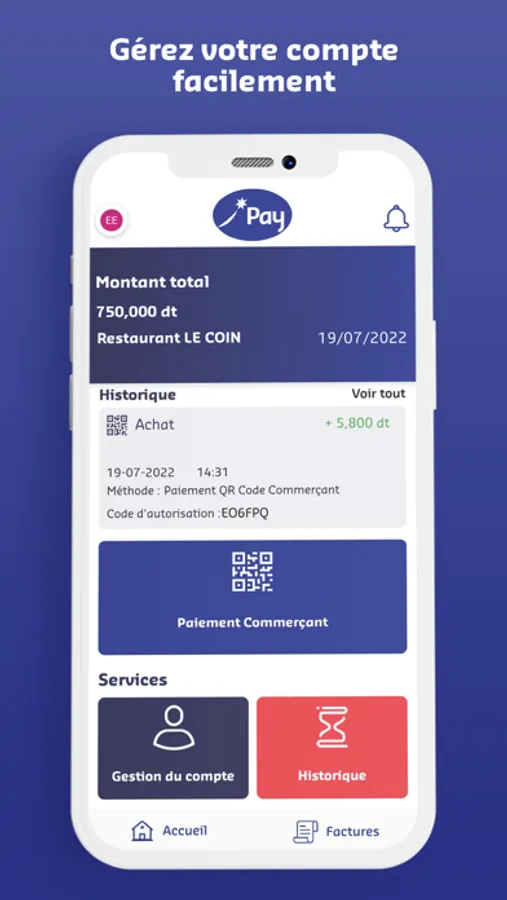 Une création de compte et une activation du service seront nécessaires pour accepter les paiements QR code.