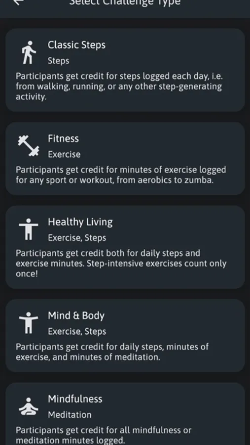 --Multiple challenge types, including daily steps, hundreds of exercises, and mindfulness/meditation.