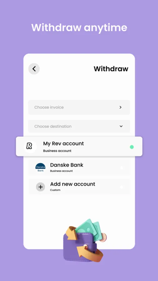 It's easy to get paid with Dealflow, and it's even easier to transfer your money to another bank account. You're in charge.