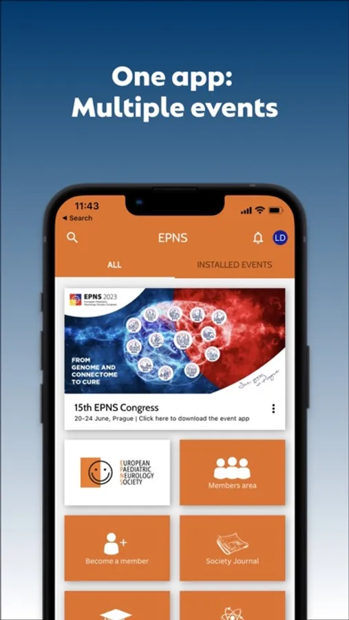 The mobile app for European Paediatric Neurology Society (EPNS). The EPNS is a society for physicians with a research or clinical interest in Paediatric Neurology who are committed to improving standards of care of all children with suspected neurological problems and to collaborating on training, continuing medical education and research. The EPNS has more than 2,000 members worldwide. The Congress is biannual.