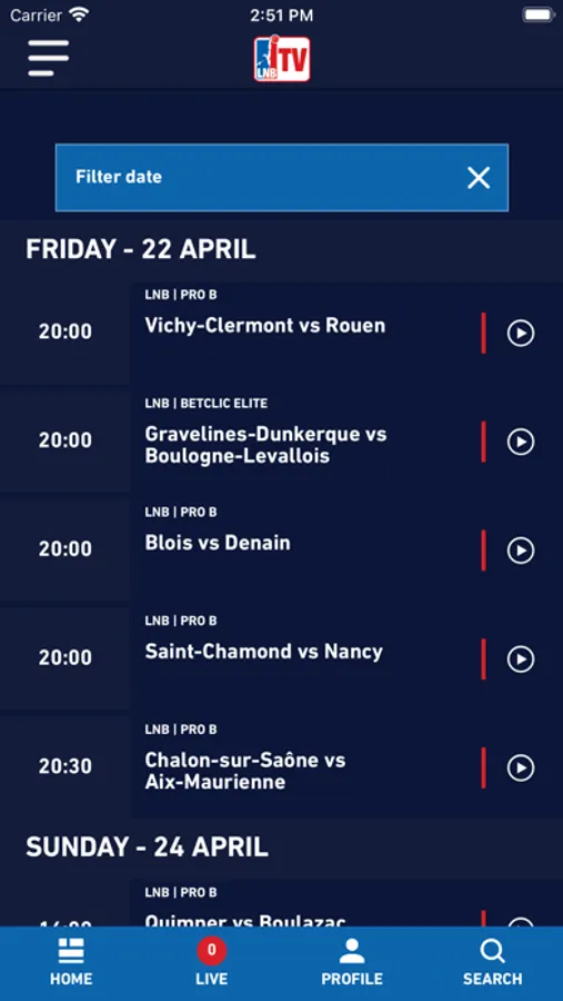 Thanks to LNB TV, all basketball fans have direct access to their favorite teams for the competitions: Betclic ELITE, PRO B, BCL, Playoffs, Leaders Cup and All Star Game.
