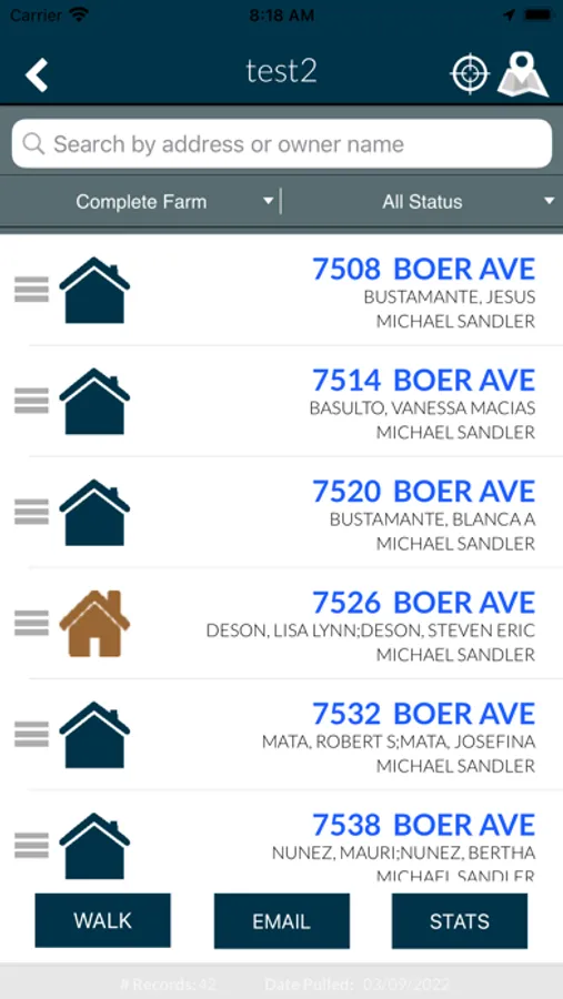 Built in walking function allows you to door knock easily and quickly. Take notes and change contact type. Later you can filter and create output for all your contacts.