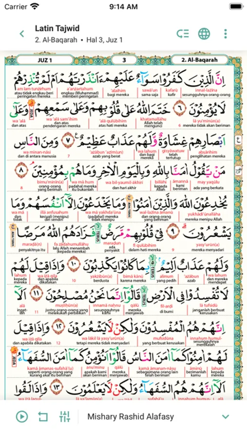 Tampilan mushaf Indonesia dilengkapi dengan tajwid memudahkan Anda memahami hukum bacaannya