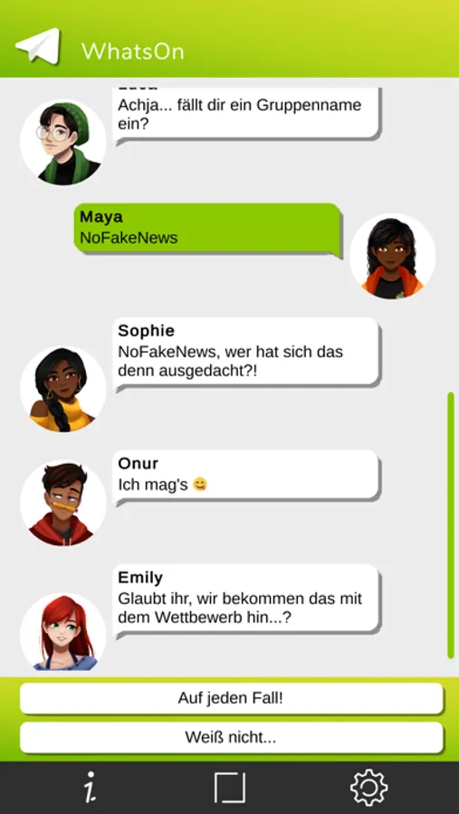 Das Spiel simuliert eine Smartphone-Oberfläche und die typischen Funktionalitäten bekannter Apps und Webseiten. Nicht nur Texte, sondern auch geteilte Sprachnachrichten, Bilder und Videos wirst Du im Spiel kritisch prüfen und beurteilen lernen. Dabei helfen Dir der Roboter Leo und deine virtuellen Freunde Emily, Luca, Onur und Sophie und begleiten Dich durchs Spiel. Es warten spannende Fälle zu mathematisch-naturwissenschaftlichen und informatischen Themen auf Dich!