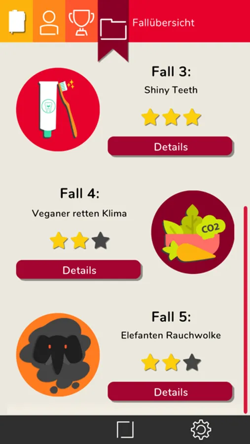 ◦ Für das Lösen der Fälle erhältst Du bis zu 3 Sternen, die Du gegen Fun Facts eintauschen kannst.