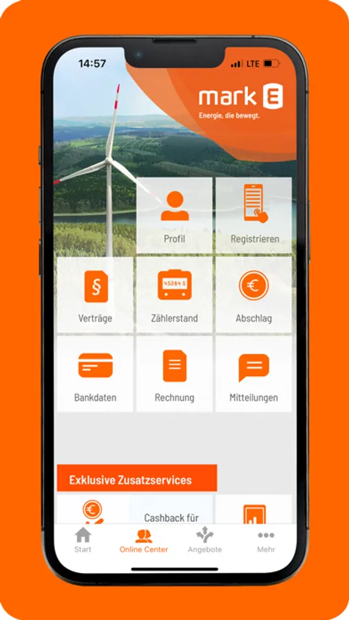 Mit der kostenlosen Mark-E App haben Sie als Kunde alles rund um Ihre Energie- und Wasserversorgung immer im Blick. Ob von Zuhause oder unterwegs: Verwalten Sie Ihre Energieverträge schnell, einfach und komfortabel über Ihr Smartphone.