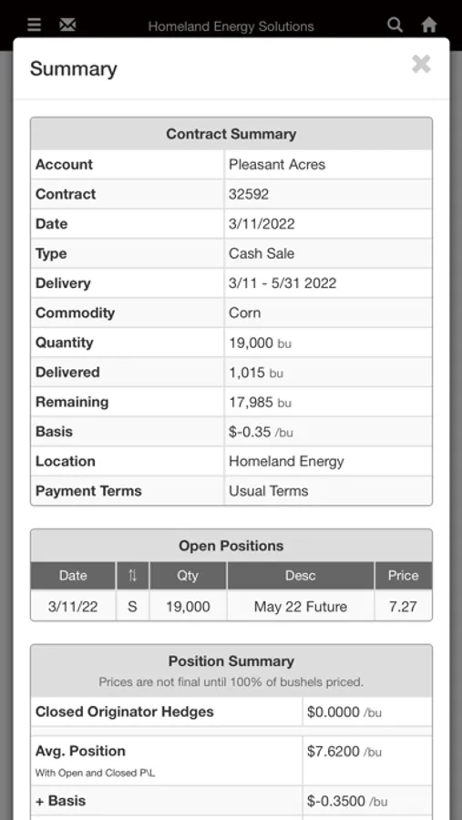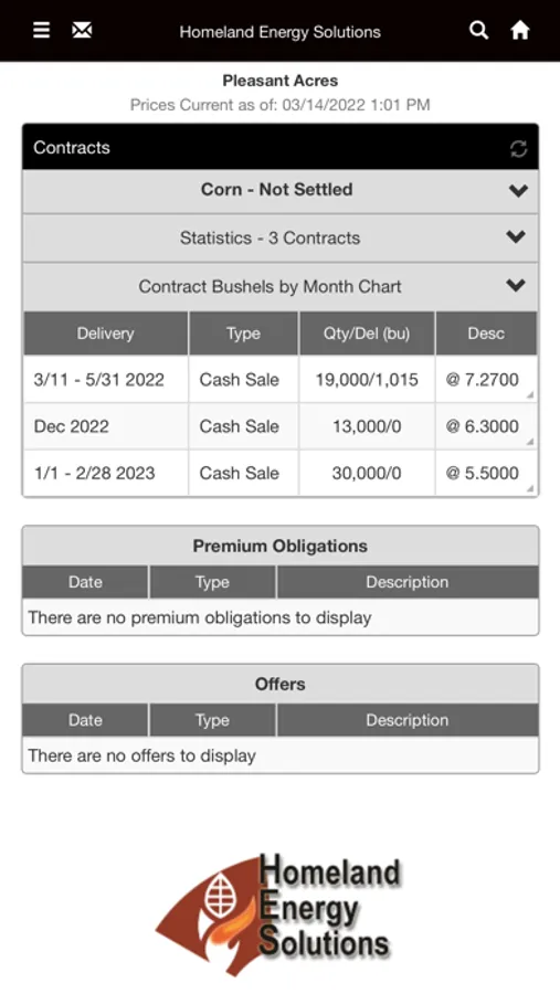 Track your scale tickets, contracts, and settlements plus monitor markets and cash bids right from your mobile device. Available for growers to download and use at Homeland Energy Solutions.