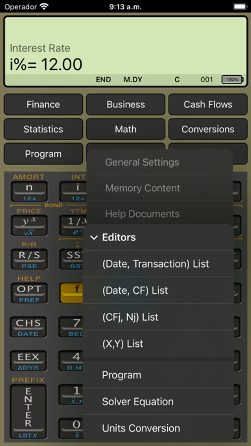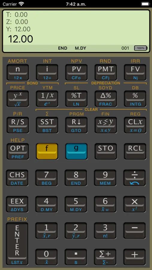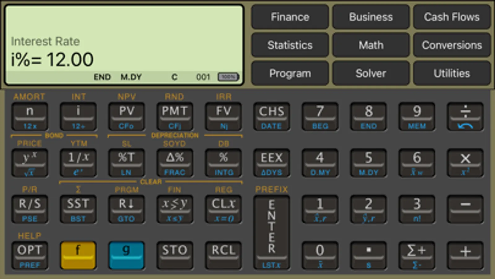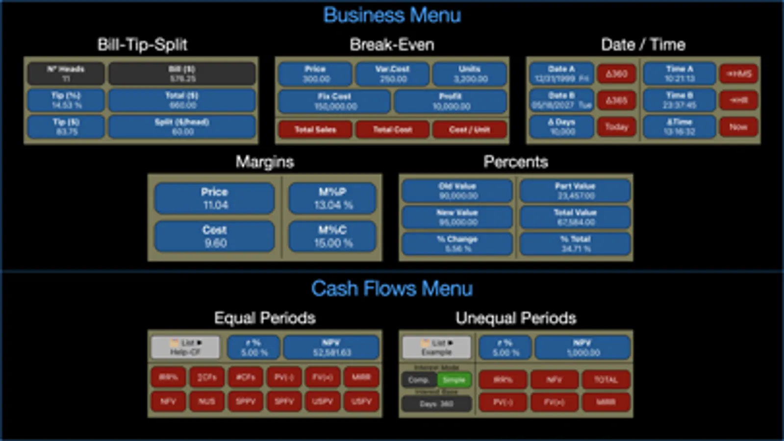 The RLM-12CX application is a general purpose calculator with a special focus in finance and business. It is based in the Hewlett-Packard HP-12C calculator, but specially designed to bring up the most of your iOS devices. With all the functions originally provided by the real calculator and expanded with complete set of menus and worksheets.
