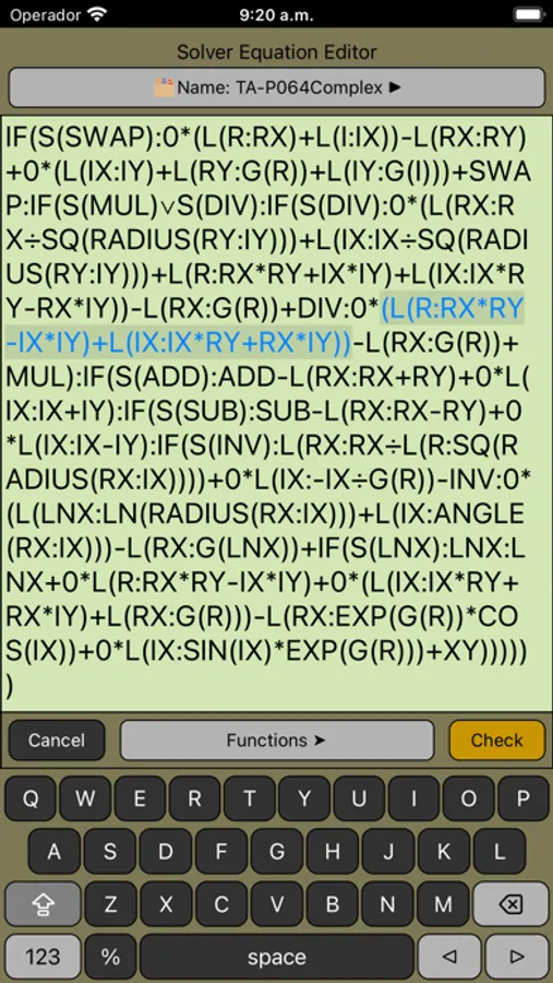 Solve arbitrary algebraic equations entered and saved in the equation editor and creates a menu with all the variables to solve any of them.
