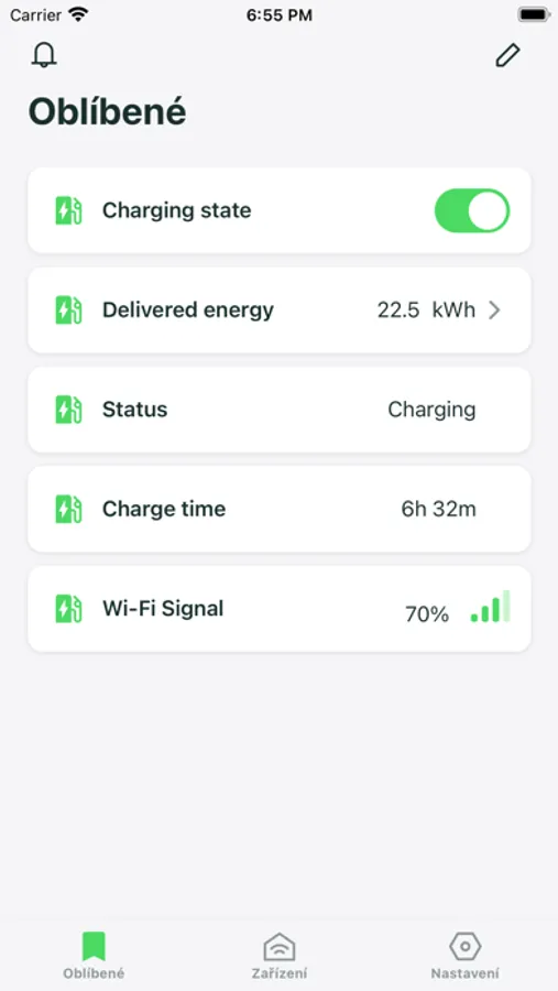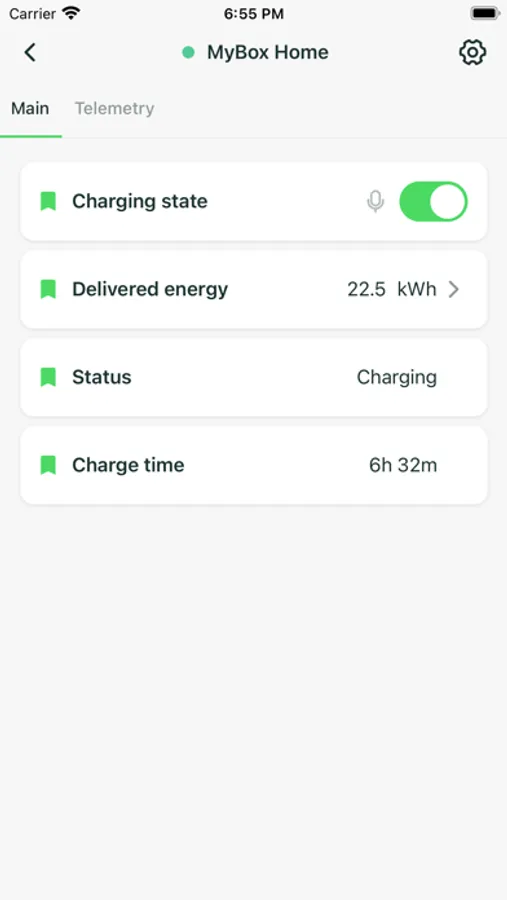 Díky aplikaci MyBox App získáte přehled o tom, za kolik jste každý měsíc nabíjeli, kolik energie právě nabíjíte do svého elektromobilu (EV). Kromě toho lze neustále kontrolovat stav nabíječky, zda je vůz připojen či nikoli a zda probíhá nabíjení.