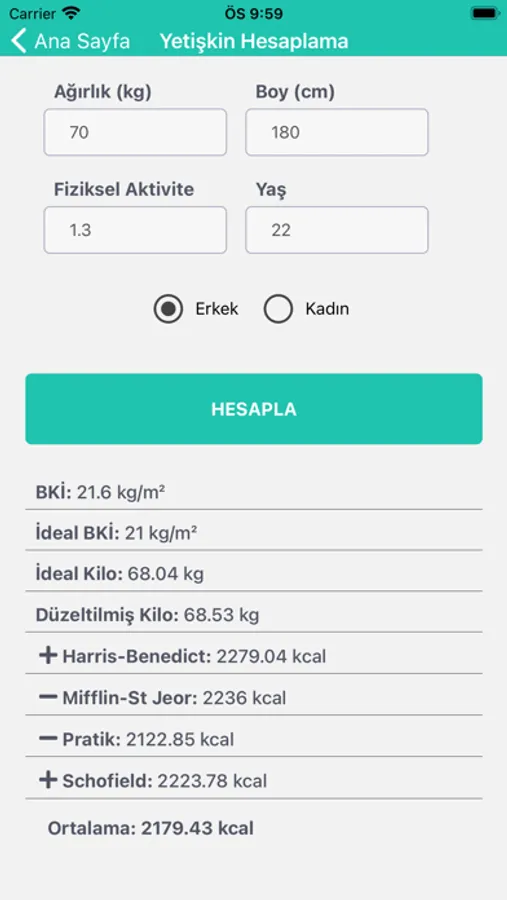 Dinamik yapısıyla güncel beslenme ve diyetetik bilgileriyle uyumlu, basit kullanımıyla sonuca hızla ulaşmanızı sağlamaktadır.