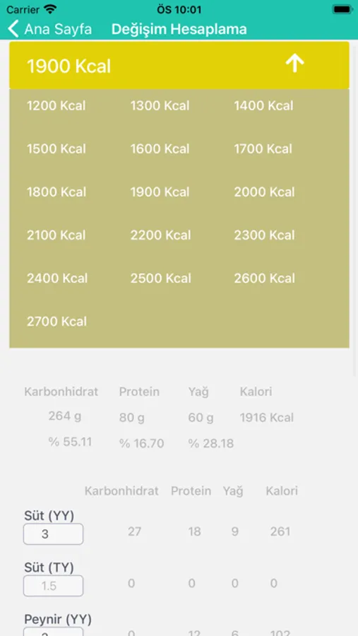 Belirlenen kalori değerinde değişim listesi oluştur.