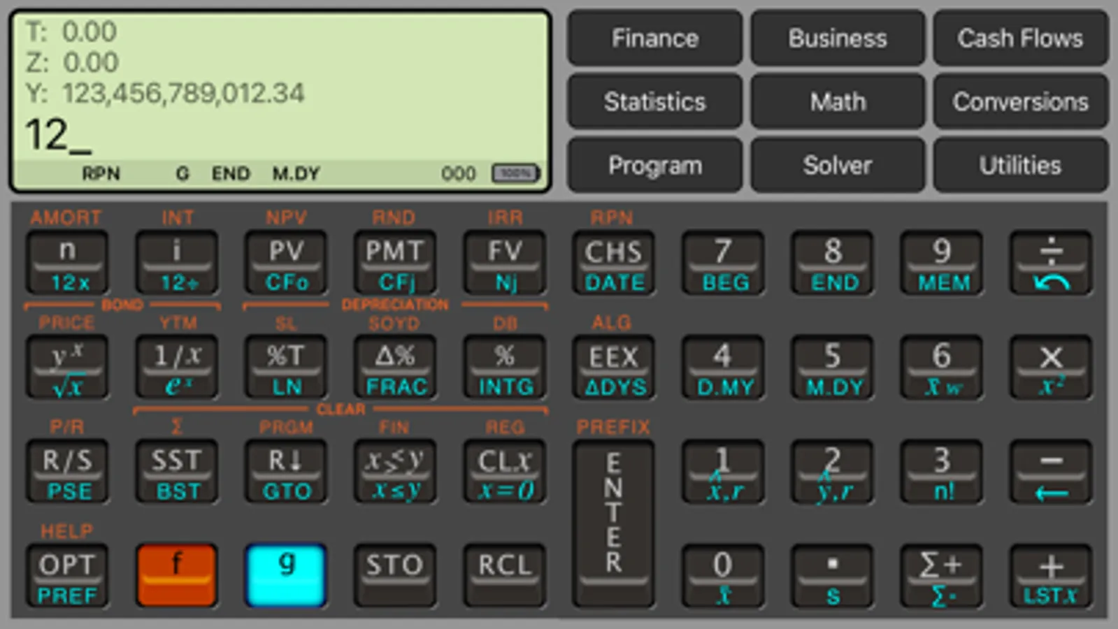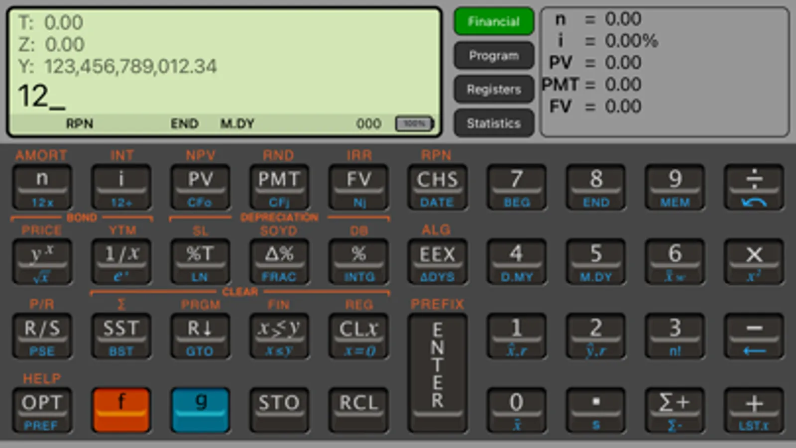 The RLM-12PX application is a general purpose calculator with a special focus in finance and business. It is based in the Hewlett-Packard HP-12C Platinum calculator, but specially designed to bring up the most of your iOS devices and , at the same time, conserving the easy of use and all functions originally provided by the real calculator.