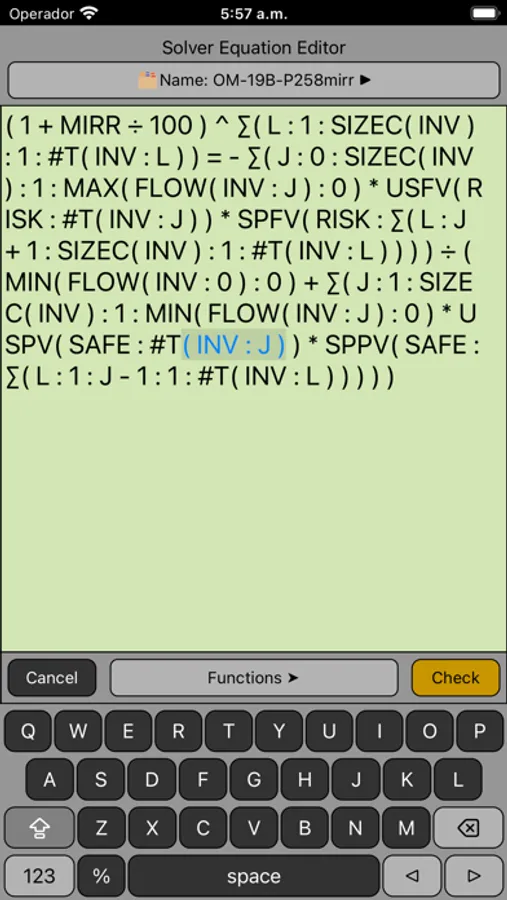 Solve arbitrary algebraic equations entered and saved in the equation editor and creates a menu with all the variables to solve any of them.
