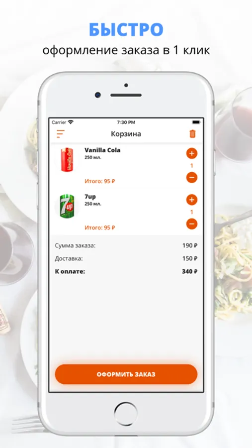 Скачивайте наше приложение, оформляйте заказ и наслаждайтесь любимой едой, где бы Вы ни были! Приятного аппетита!