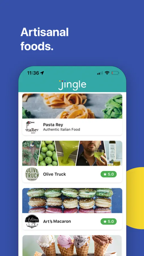 What if your favorite ice cream, or fresh croissant were around the corner and let you know about it for instant delivery? Download Jingle and get notified when artisanal local foods are nearby in mobile stores. Think of us as your corner bakery, your favorite ice cream shop, your farmer’s market, at your door.