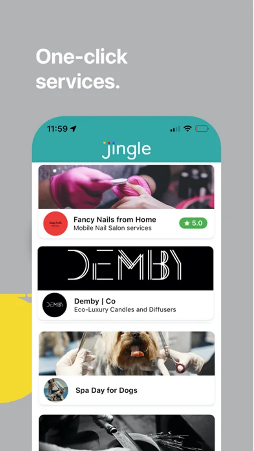 What if you needed your dog groomed right now, and the best groomer was around the corner, and you never knew? With Jingle you can be notified when services like pet grooming, knife sharpening, tire repair, wellness, mani-pedi, are near you so they can be delivered to you instantly.