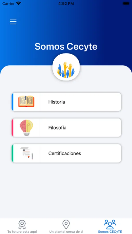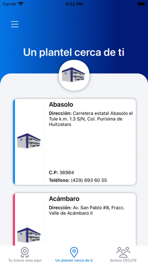 Aplicación móvil del Colegio Estudios Científicos y Tecnológico del Estado Guanajuato donde se pretende dar conocer la oferta educativa del colegio así como ubicación de los 56 planteles que conforman nuestra comunidad educativa; además de nuestra filosofía institucional.