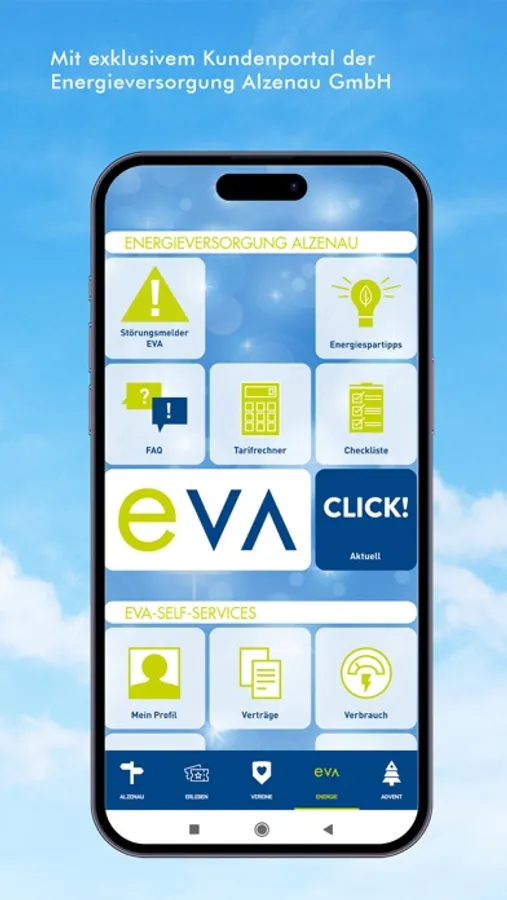 I love ALZ ist auf Initiative der Energieversorgung Alzenau (EVA) entstanden. Deshalb sind auch die Funktionen des EVA Kundenportals komplett integriert. EVA-Kunden können sich damit direkt einloggen, ihre Rechnungen einsehen, Zählerstände melden sowie Abschläge ändern.