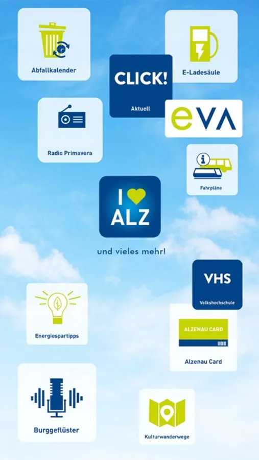Zu den wichtigen Kooperationspartnern gehört die Stadt Alzenau. Deshalb bietet I love ALZ schon jetzt viele praktische und nützliche Funktionen. Das ist aber nur der Anfang. Die App wird ständig weiterentwickelt, und nach und nach um weitere Funktionen ergänzt. Am besten gleich herunterladen, dann hast du schon jetzt direkten Zugriff auf: