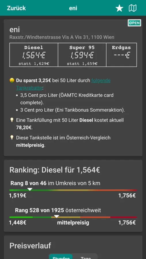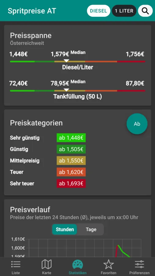 - Preisverläufe und Trends: Unsere App zeigt dir, wie sich die Preise in den letzten Monaten entwickelt haben, damit du taktisch zum richtigen Zeitpunkt tanken kannst.