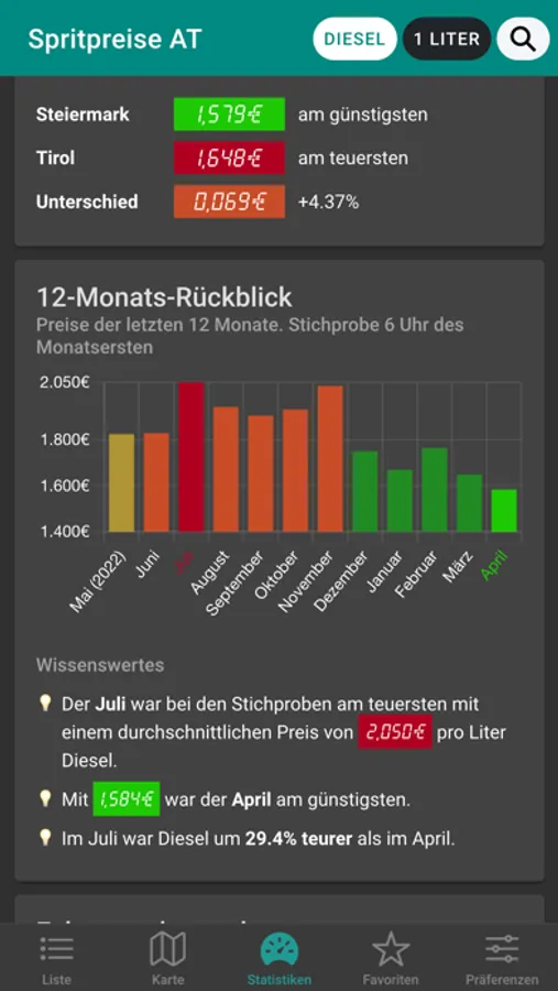 - Jahresrückblick: Werfe einen Blick auf die Preise der letzten 12 Monate und erfahre mehr über die Teuerungsrate durch die Spritpreisinflation.