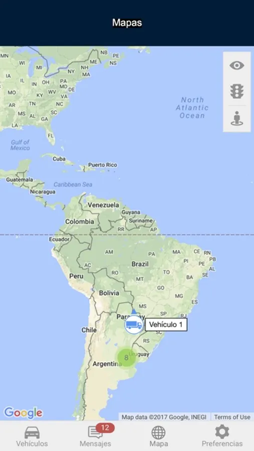 Vea en un mapa la ubicación de toda su flota, con vistas de mapa Standard, Imagen Satelital o Híbrido.