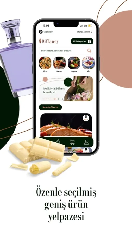 Kaliteli yaşamın kapısını Diffancy ile aralayın. Sizin için özenle seçmiş olduğumuz işletmeleri, bulunduğumuz her yerde görebilir, tüm ihtiyaçlarınızı anında karşılayabilirsiniz. Siz siparişinizi verin, biz sizin için kapınıza kadar getirelim.