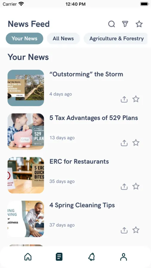 Clients and guests can set custom parameters to tailor the news feed to their preferences. You can receive important tax, accounting and other business-related updates on the following industries: