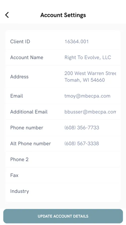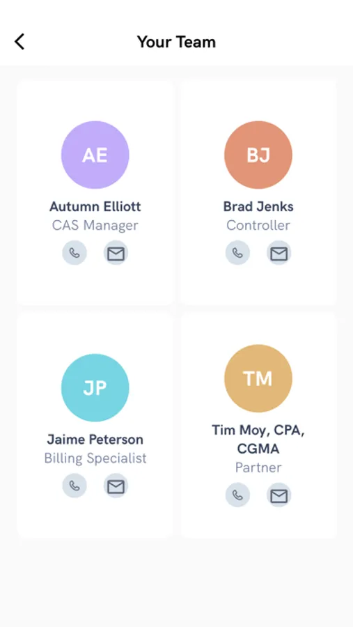 • You can view your MBE CPAs service team and contact them directly through the app.