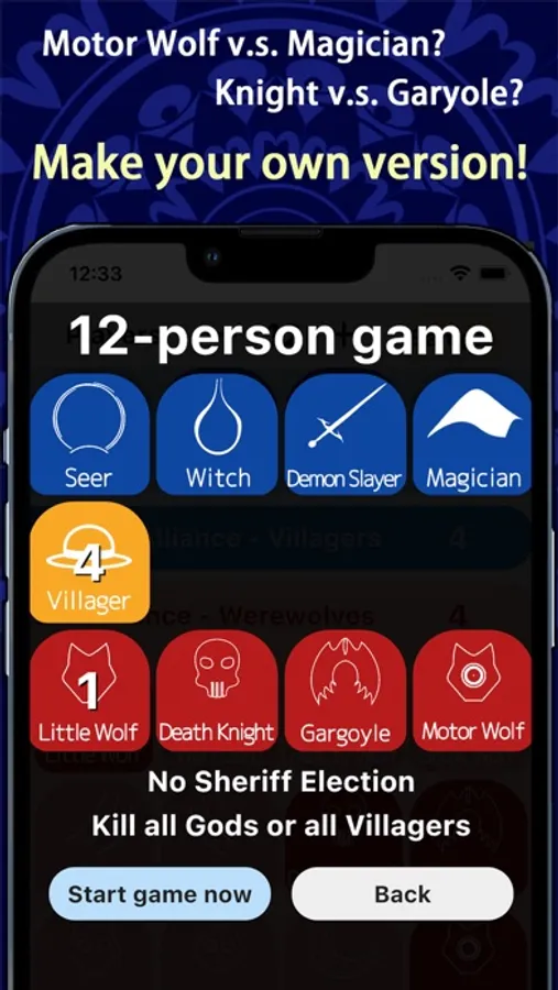 ▪ "Make your own version": You can include any type of werewolves and gods into your own designed game