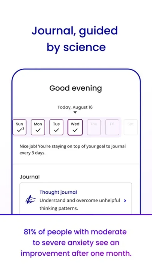 Unstuck is your companion on the journey to better mental health. Using a guided CBT journal to process thoughts and experiences, you’ll develop the skills to overcome anxiety and depression. Unstuck is based on cognitive behavioral therapy (CBT), the gold standard treatment in psychotherapy. The techniques we use are backed by science, so expect results.