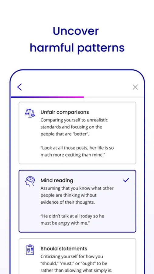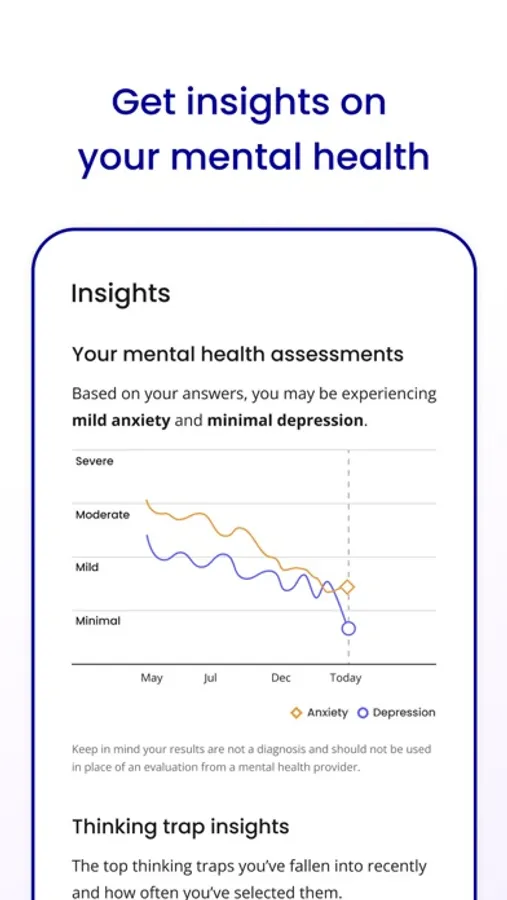 Unstuck will deliver personalized insights so you can understand how your thought patterns change over time. Discover which thinking traps you’ve overcome and which you’re still falling into. See how events in your life are tied to changing levels of anxiety and depression. Draw meaningful connections to accelerate your mental health improvement.