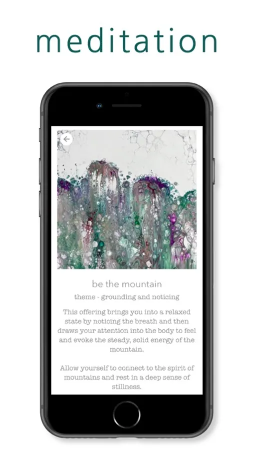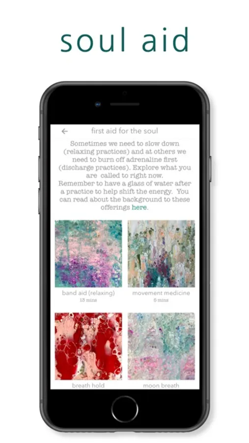 Each centred soul moment has its own painting as an icon. In this way, the practices are offered through a visual landscape of colour and images inviting users to intuitively navigate its offerings by what they are drawn to.