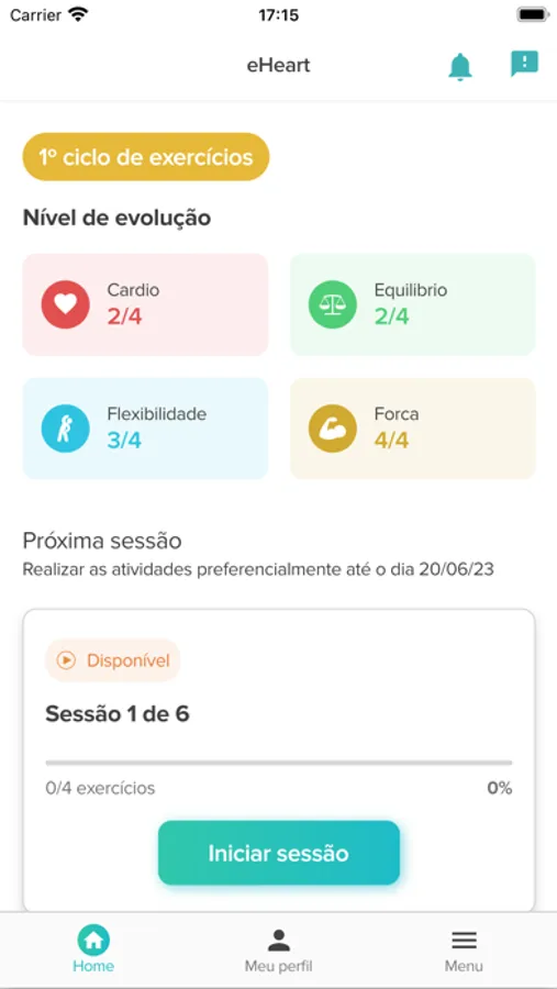 O App eHeart deve ser instalado pelos participantes da pesquisa de reabilitação cardiorrespiratória eHeart (www.eheart.com.br), para acompanhar os exercíos e fornecer informações sobre seu estado clínico.