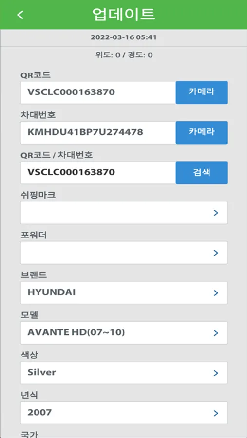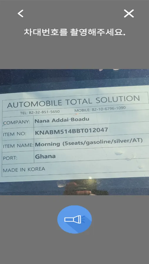 ▶ 자동인식 기능 : 차대번호 및 차종, 연식, 양하지 등의 정보를 QCR 문자인식방식으로 자동인식