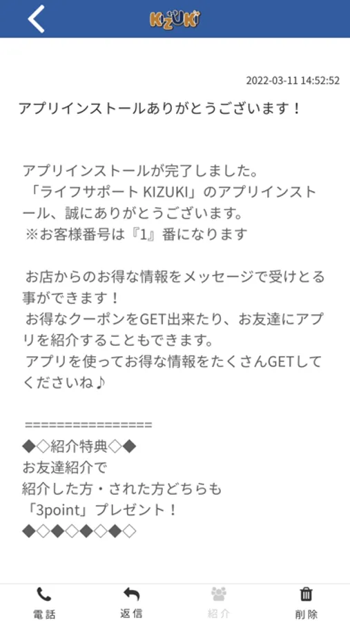 KIZUKIのアプリをSNSを通じてお友達に紹介する事ができます。